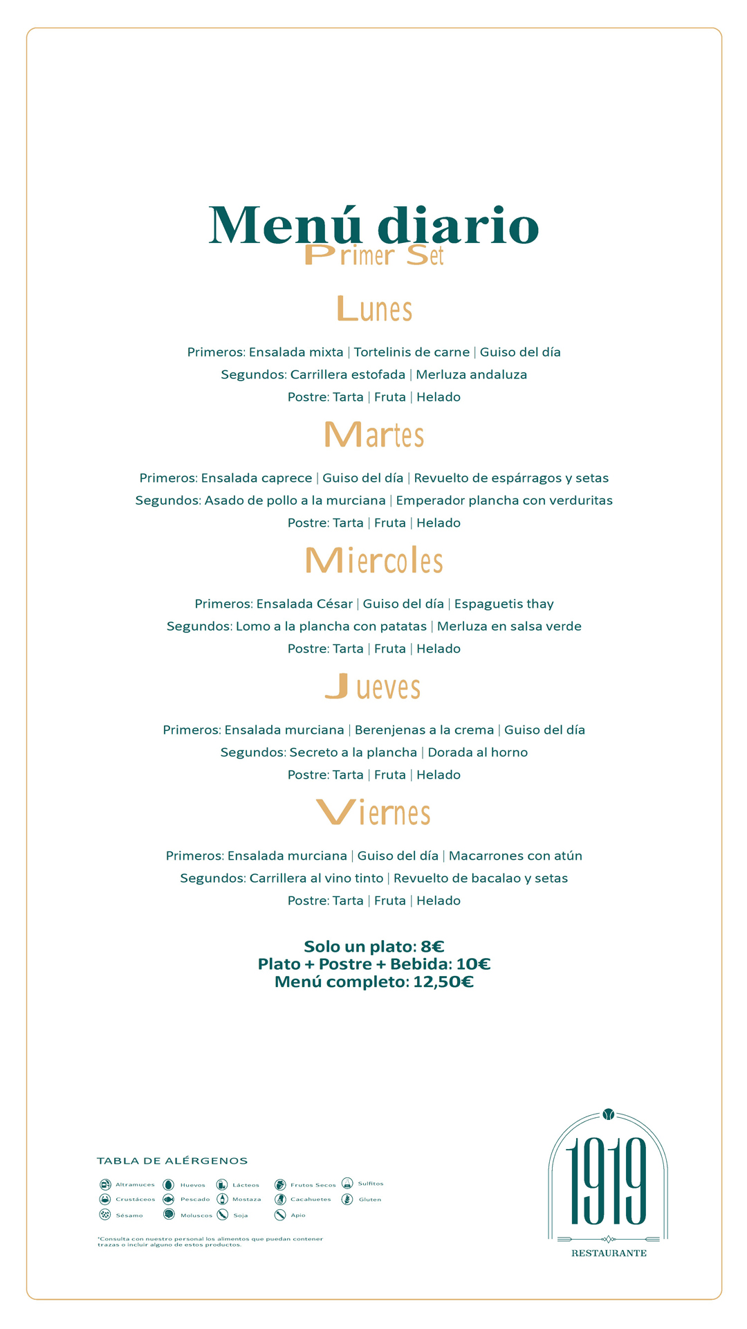 Menú Restaurante RMCT1919 — Semana del 30 de marzo al 3 de abril Ver imagen más grande Por |2026-03-30T08:33:58+02:00marzo 30th, 2026|Menú del día|Sin comentarios Comparte en tus redes sociales FacebookXRedditLinkedInTumblrPinterest Artículos relacionados Novedades horarios y carta restauración RMCT1919 Novedades horarios y carta restauración RMCT1919 marzo 23rd, 2026 | Sin comentarios Menú Restaurante RMCT1919 — Semana del 23 al 27 de marzo Menú Restaurante RMCT1919 — Semana del 23 al 27 de marzo marzo 23rd, 2026 | Sin comentarios Menú Restaurante RMCT1919 — Semana del 9 al 13 de marzo Menú Restaurante RMCT1919 — Semana del 9 al 13 de marzo marzo 9th, 2026 | Sin comentarios Menú Restaurante RMCT1919 — Semana del 2 al 6 de marzo Menú Restaurante RMCT1919 — Semana del 2 al 6 de marzo marzo 2nd, 2026 | Sin comentarios Menú Restaurante RMCT1919 — Semana del 23 al 27 de febrero Menú Restaurante RMCT1919 — Semana del 23 al 27 de febrero febrero 23rd, 2026