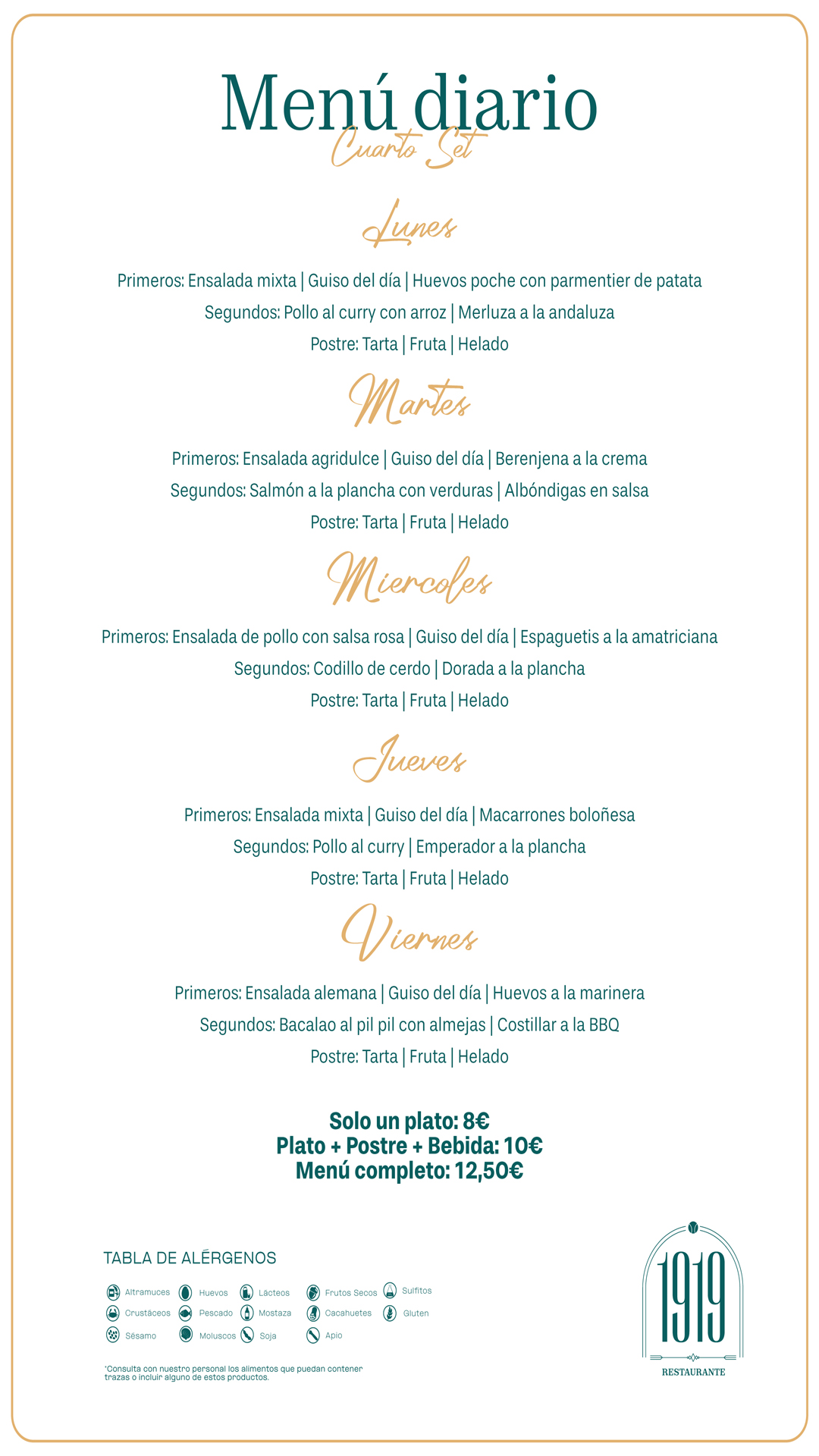 Menú Restaurante RMCT1919 — Semana del 9 al 13 de marzo Ver imagen más grande Por |2026-03-03T19:24:33+01:00marzo 9th, 2026|Menú del día|Sin comentarios Comparte en tus redes sociales FacebookXRedditLinkedInTumblrPinterest Artículos relacionados Menú Restaurante RMCT1919 — Semana del 2 al 6 de marzo Menú Restaurante RMCT1919 — Semana del 2 al 6 de marzo marzo 2nd, 2026 | Sin comentarios Menú Restaurante RMCT1919 — Semana del 23 al 27 de febrero Menú Restaurante RMCT1919 — Semana del 23 al 27 de febrero febrero 23rd, 2026 | Sin comentarios Menú Restaurante RMCT1919 — Semana del 16 al 20 de febrero Menú Restaurante RMCT1919 — Semana del 16 al 20 de febrero febrero 16th, 2026 | Sin comentarios Menú Restaurante RMCT1919 — Semana del 09 al 13 de febrero Menú Restaurante RMCT1919 — Semana del 09 al 13 de febrero febrero 9th, 2026 | Sin comentarios Menú Restaurante RMCT1919 — Semana del 02 al 06 de febrero Menú Restaurante RMCT1919 — Semana del 02 al 06 de febrero febrero 2nd, 2026